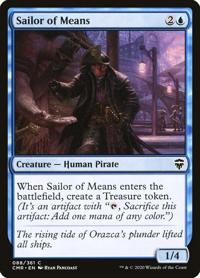 When Sailor of Means enters the battlefield, create a Treasure token. (It's an artifact with "{T}, Sacrifice this artifact: Add one mana of any color.")