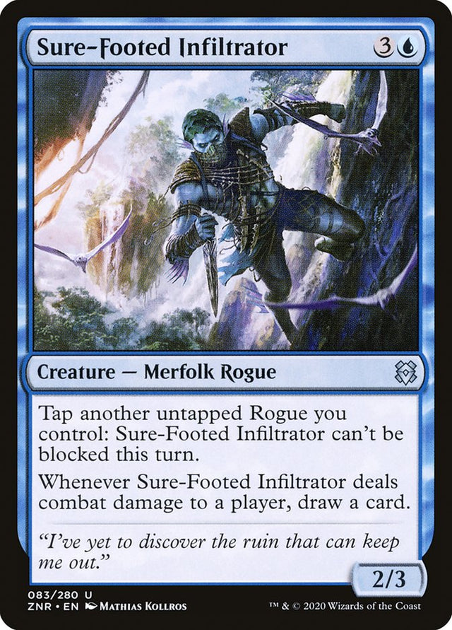 Tap another untapped Rogue you control: Sure-Footed Infiltrator can't be blocked this turn.