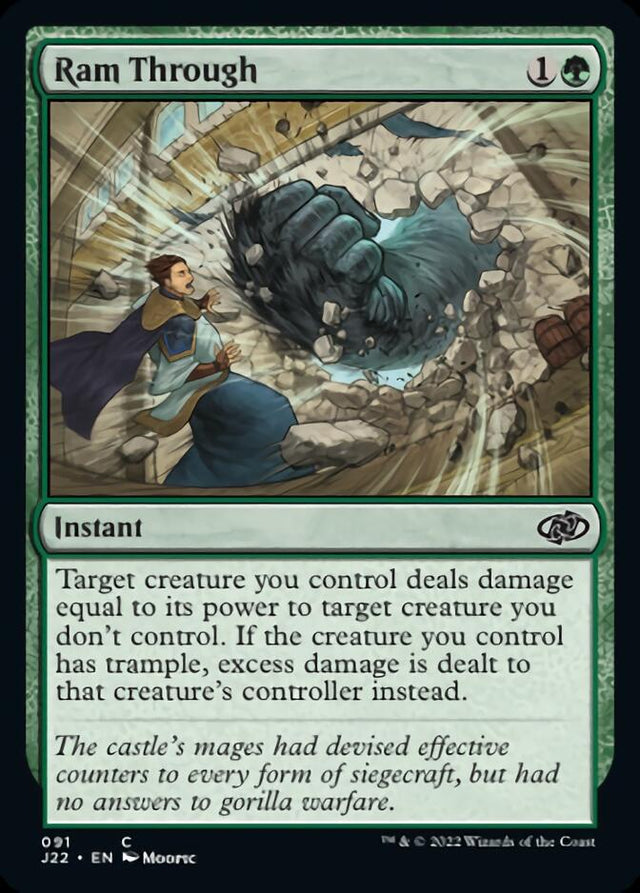 Target creature you control deals damage equal to its power to target creature you don't control. If the creature you control has trample, excess damage is dealt to hat creature's controller instead.