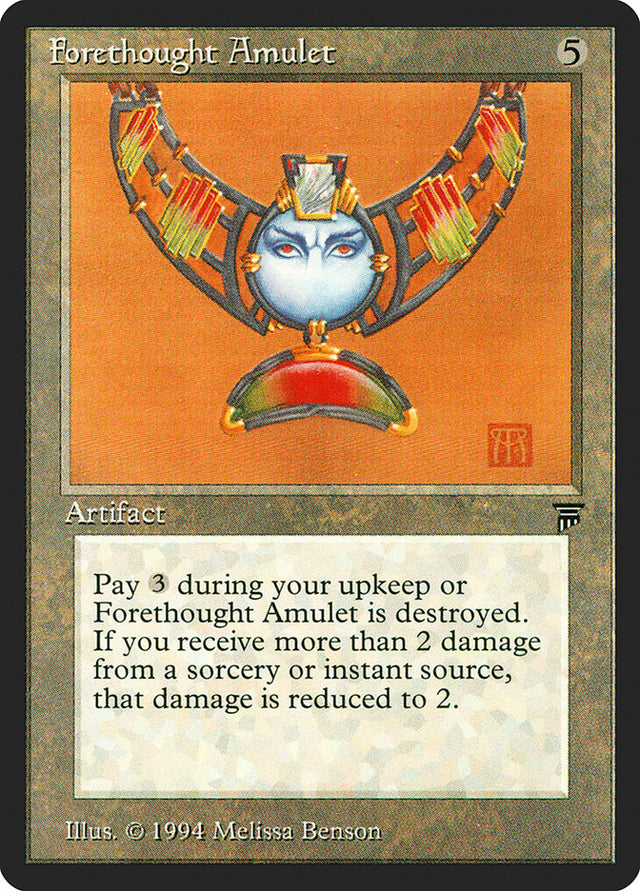 At the beginning of your upkeep, sacrifice Forethought Amulet unless you pay {3}.