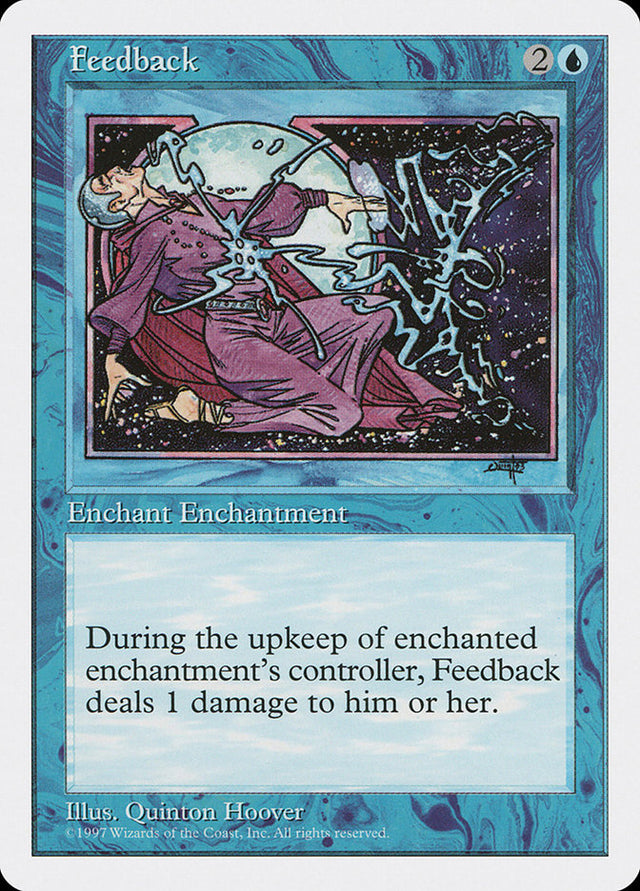 At the beginning of the upkeep of enchanted enchantment's controller, Feedback deals 1 damage to that player.