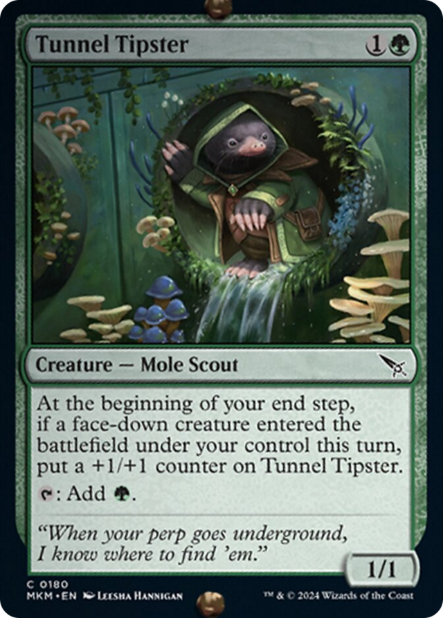 At the beginning of your end step, if a face-down creature entered the battlefield under your control this turn, put a +1/+1 counter on Tunnel Tipster.