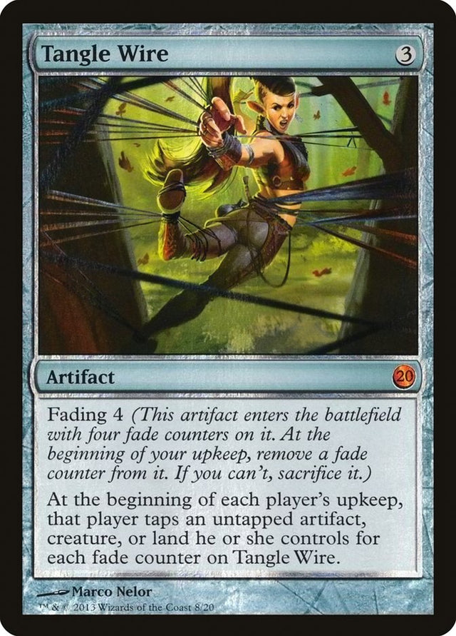 At the beginning of each player's upkeep, that player taps an untapped artifact, creature, or land they control for each fade counter on Tangle Wire.