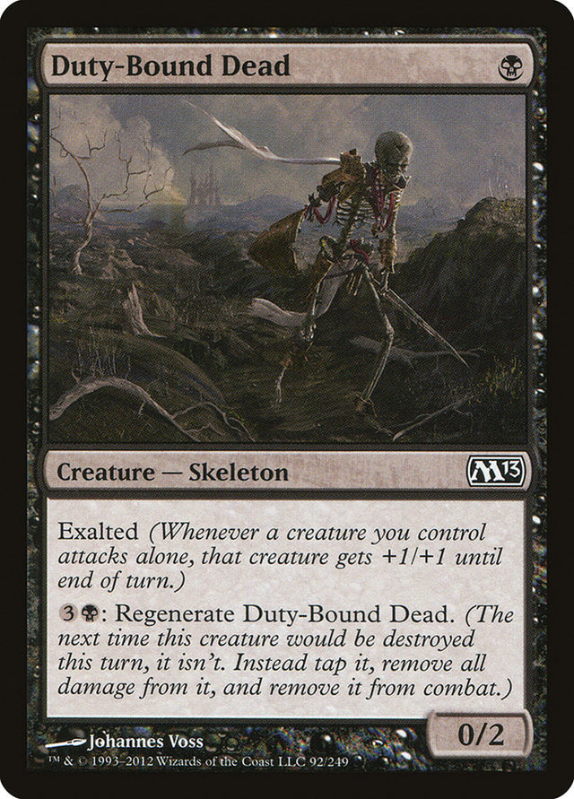 {3}{B}: Regenerate Duty-Bound Dead. (The next time this creature would be destroyed this turn, it isn't. Instead tap it, remove all damage from it, and remove it from combat.)