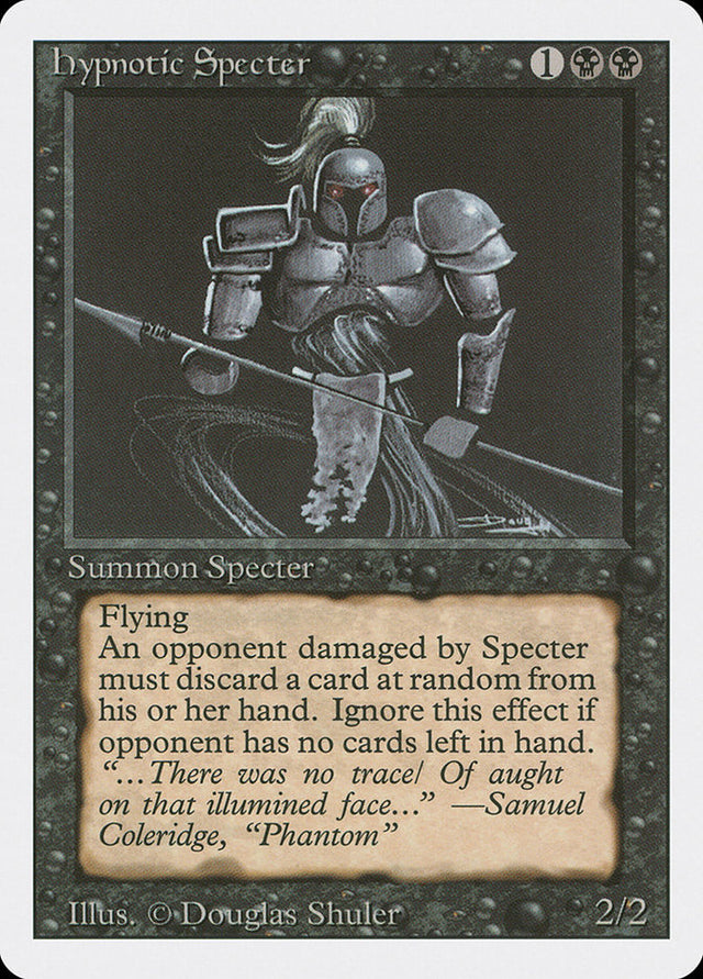 Whenever Hypnotic Specter deals damage to an opponent, that player discards a card at random.