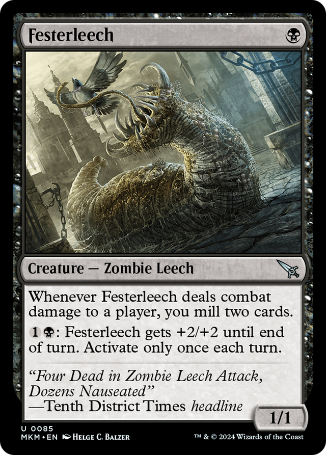 Whenever Festerleech deals combat damage to a player, you mill two ccards.