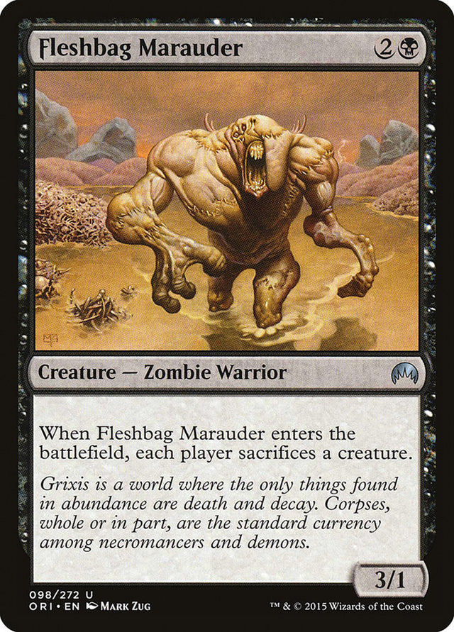 When Fleshbag Marauder enters the battlefield, each player sacrifices a creature.