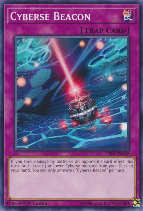 If you took damage by battle or an opponent's card effect this turn: Add 1 Level 4 or lower Cyberse monster from your Deck to your hand. You can only activate 1 "Cyberse Beacon" per turn.