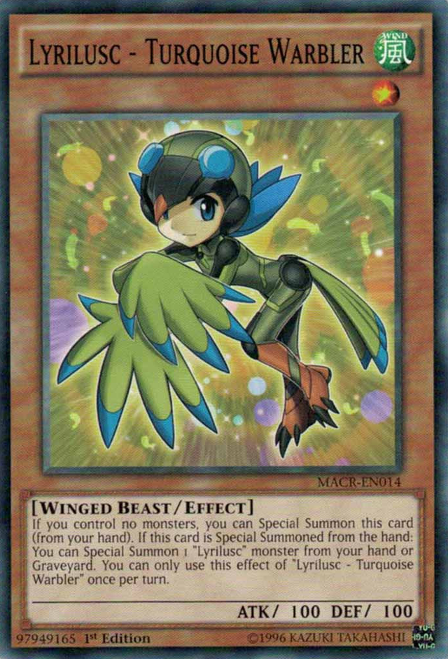 If you control no monsters, you can Special Summon this card (from your hand). If this card is Special Summoned from the hand: You can Special Summon 1 "Lyrilusc" monster from your hand or Graveyard. You can only use this effect of "Lyrilusc - Turquoise Warbler" once per turn.