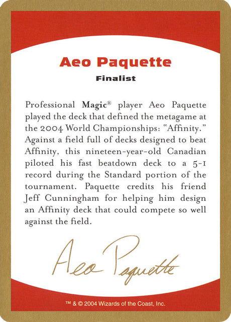 Aeo Paquette Bio [World Championship Decks 2004]