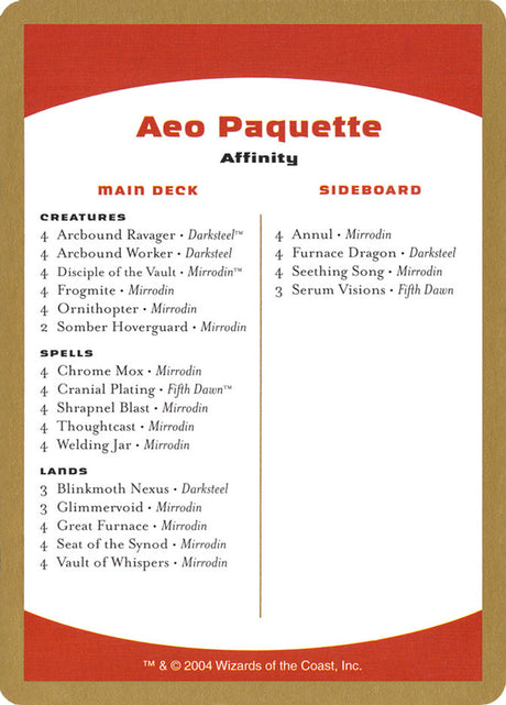 Aeo Paquette Decklist [World Championship Decks 2004]