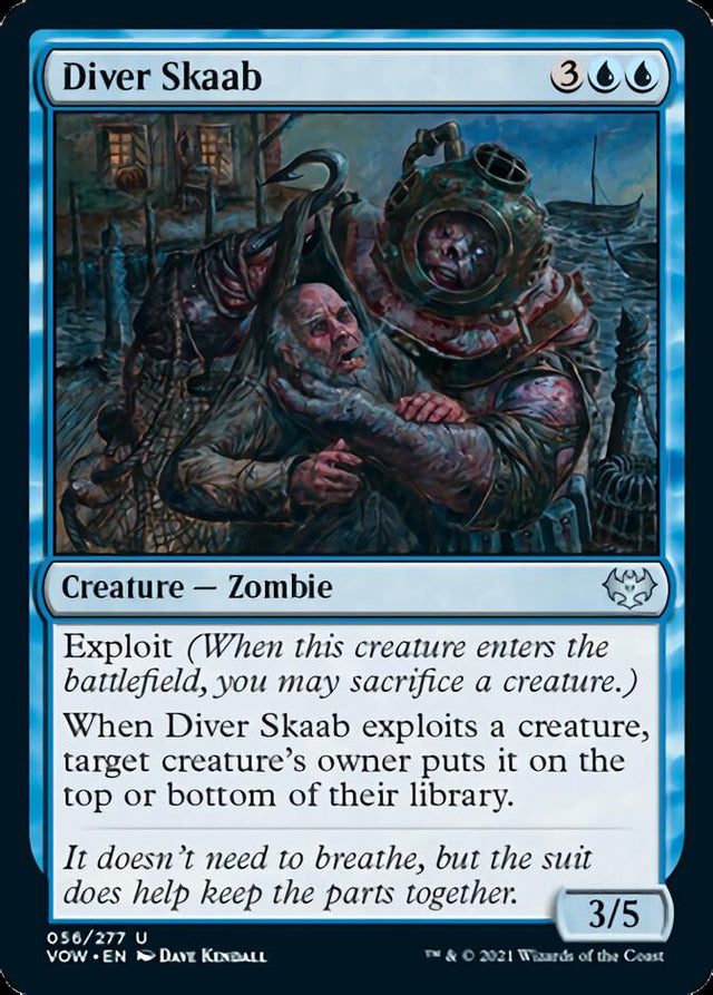 When Diver Skaab exploits a creature, target creature's owner puts it on the top or bottom of their library.