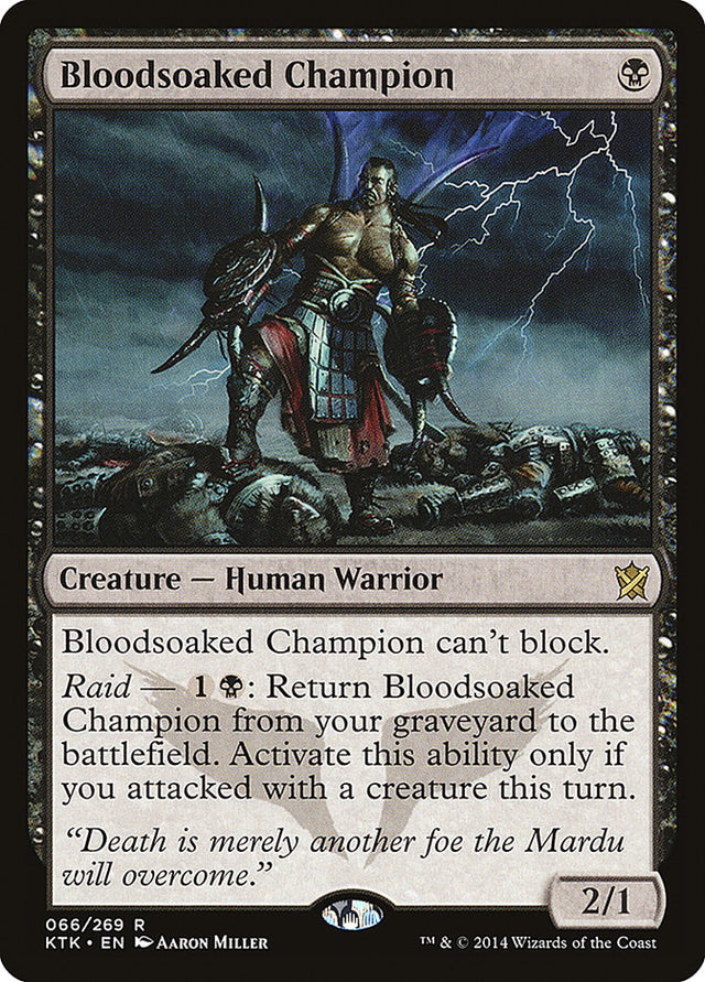 Raid — {1}{B}: Return Bloodsoaked Champion from your graveyard to the battlefield. Activate only if you attacked this turn.