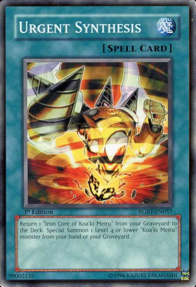 Return 1 "Iron Core of Koa'ki Meiru" from your Graveyard to the Deck. Special Summon 1 Level 4 or lower "Koa'ki Meiru" monster from your hand or your Graveyard.