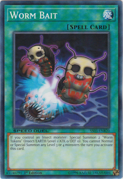 If you control an Insect monster: Special Summon 2 "Worm Tokens" (Insect/EARTH/Level 1/ATK 0/DEF 0). You cannot Normal or Special Summon any Level 3 or 4 monsters the turn you activate this card.