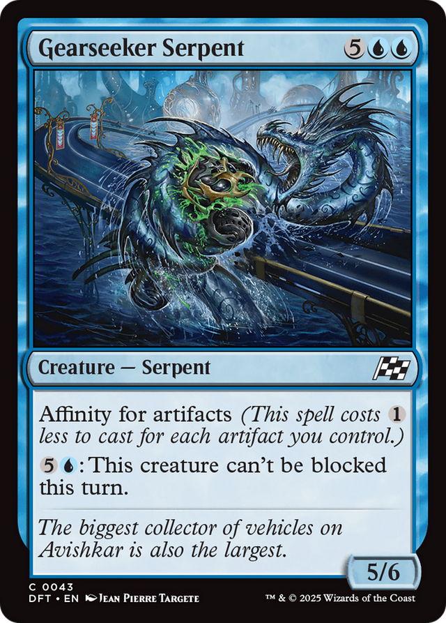 {5}{U}: Gearseeker Serpent can't be blocked this turn.