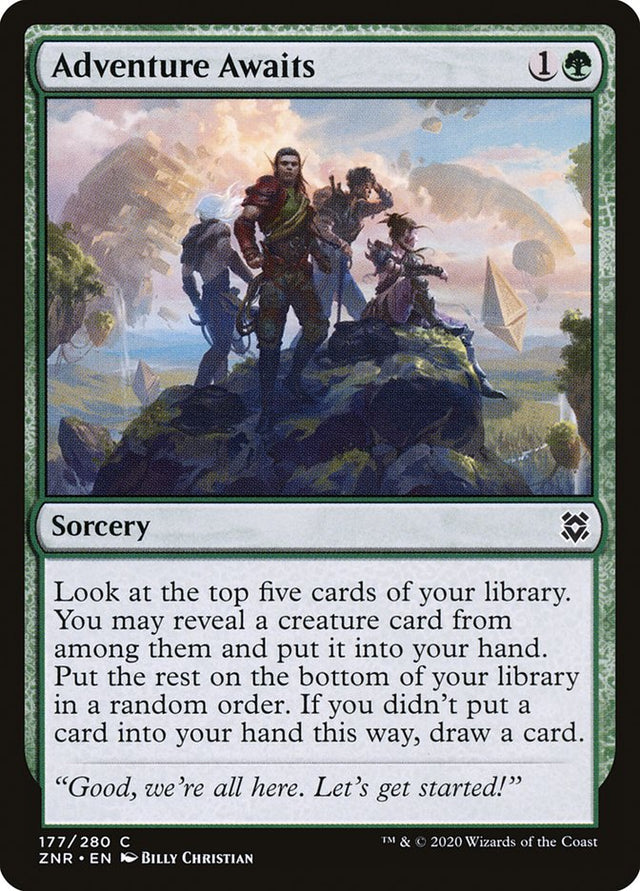 Look at the top five cards of your library. You may reveal a creature card from among them and put it into your hand. Put the rest on the bottom of your library in a random order. If you didn't put a card into your hand this way, draw a card.